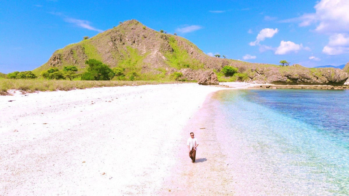 On the way to Labuan Bajo harbor, you might stop at Kanawa Island and walk around the beach.